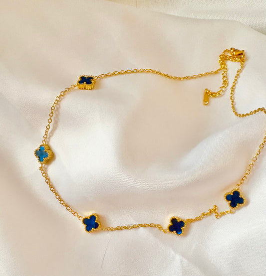 Navy Blue Clover Station Necklace – 18K Gold Plated Stainless Steel