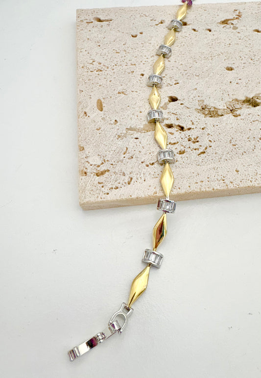 Two-Tone Gold and Silver Zirconium Link Bracelet