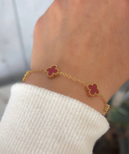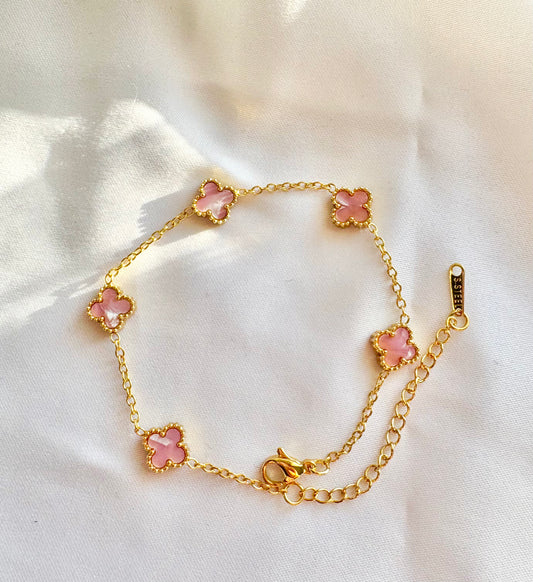 Glossy Pink Clover Station Bracelet – 18K Gold Plated Stainless Steel