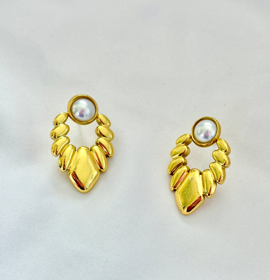 Gold Ribbon Bow Pearl Earrings – Vintage Style Statement Drops