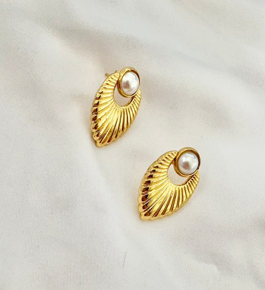 Gold Fan Pearl Statement Earrings – Stainless Steel