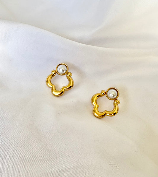 Gold Clover Pearl Earrings – Stainless Steel