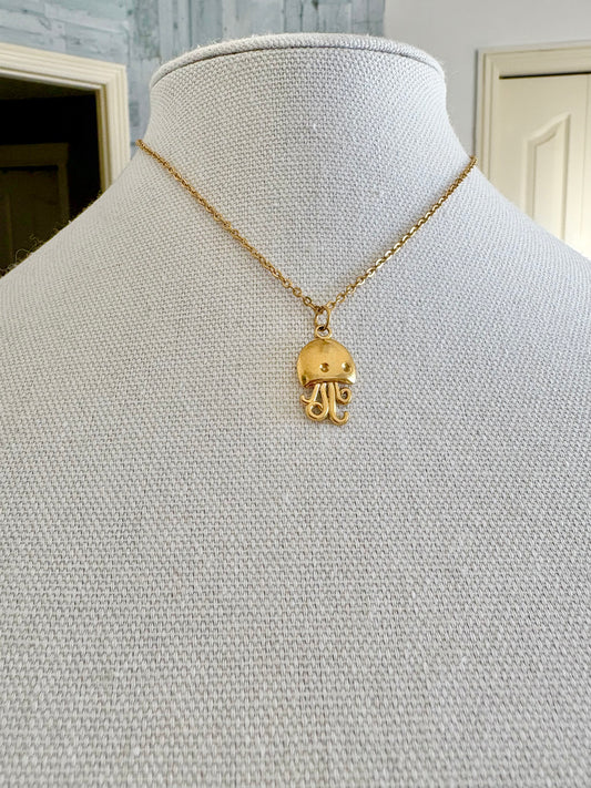 Gold Jellyfish Pendant Necklace – Ocean-Inspired Minimalist Jewelry