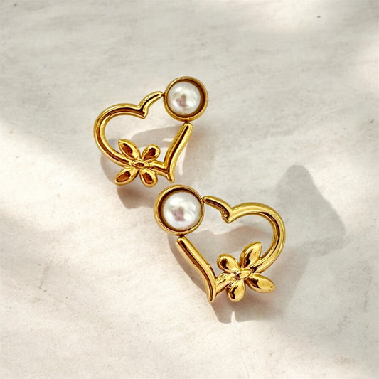Gold Heart Pearl Stud Earrings – Stainless Steel