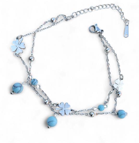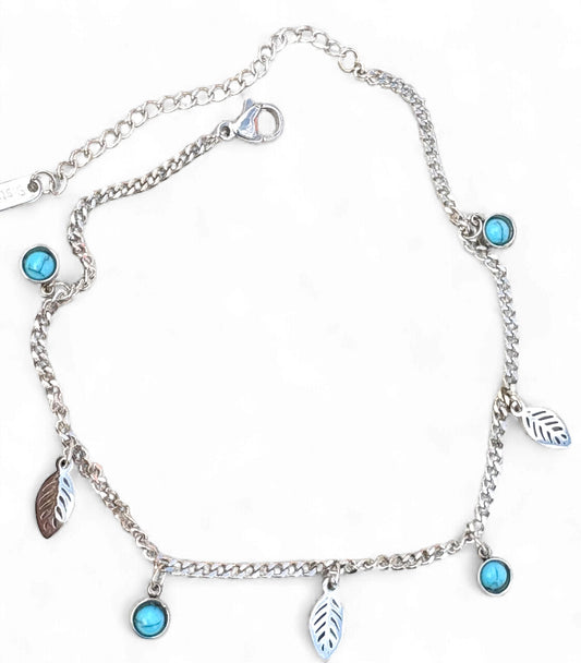 Turquoise Charm Leaf Anklet - Non-tarnish and Waterproof