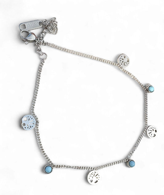 Tree of Life & Turquoise Charm Anklet - 18k gold Plated, Tarnish Free