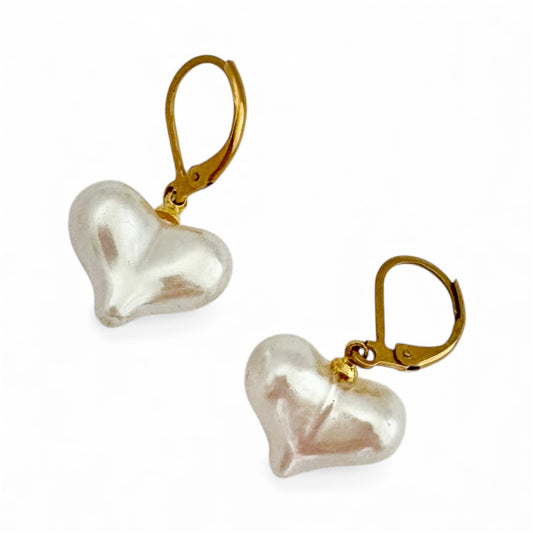 Gold Pearl Heart Drop Earrings – 18K Gold Plated Stainless Steel