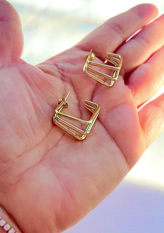 2 cm Triple Square Hoop Earrings – Modern Geometric Gold Studs
