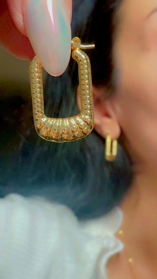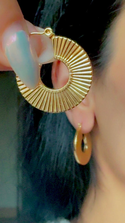 Geometric Gold Textured Hoop Earrings – Non-Tarnish Stainless Steel