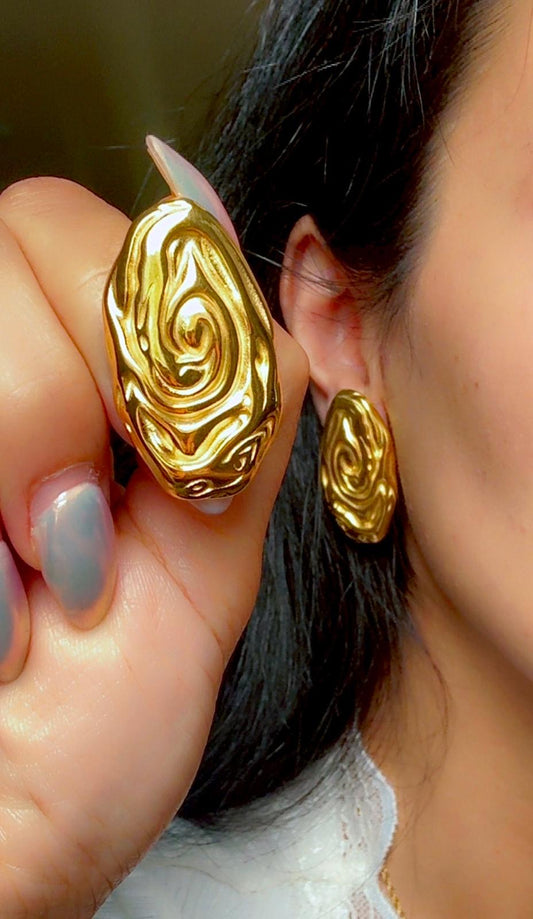 Bold Textured Gold Statement Earrings – Non-Tarnish Stainless Steel