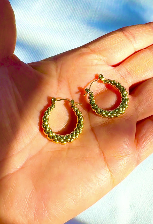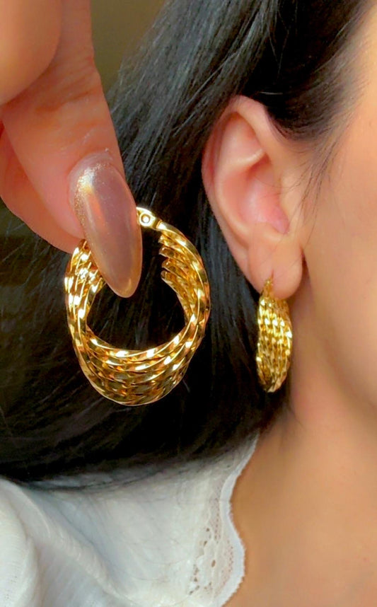 Textured Layered Gold Hoop Earrings – 18K Gold Plated Stainless Steel, Non-Tarnish