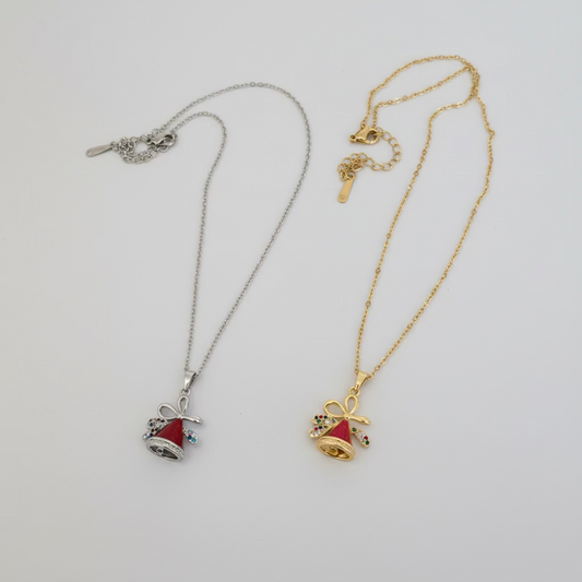 Santa Hat & Bow Pendant Necklace – 18k gold Plated Stainless steel