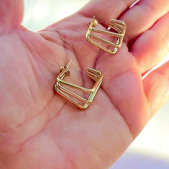 2 cm Triple Square Hoop Earrings – Modern Geometric Gold Studs