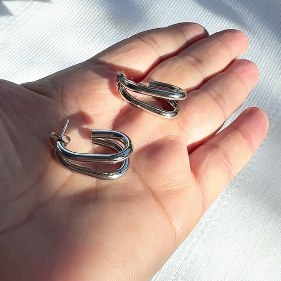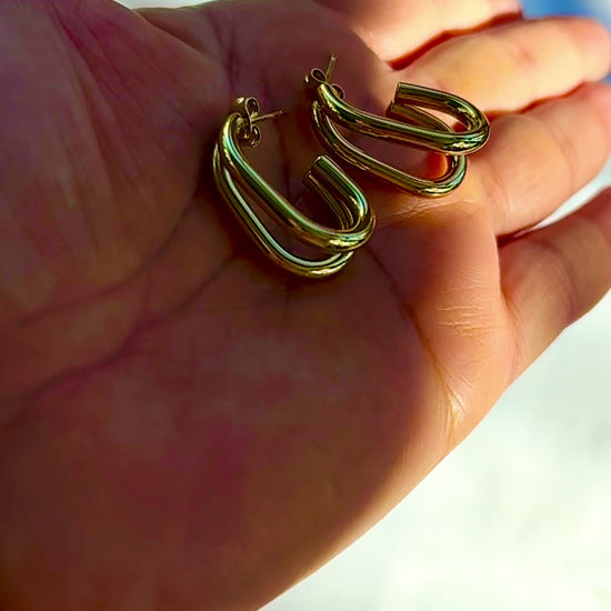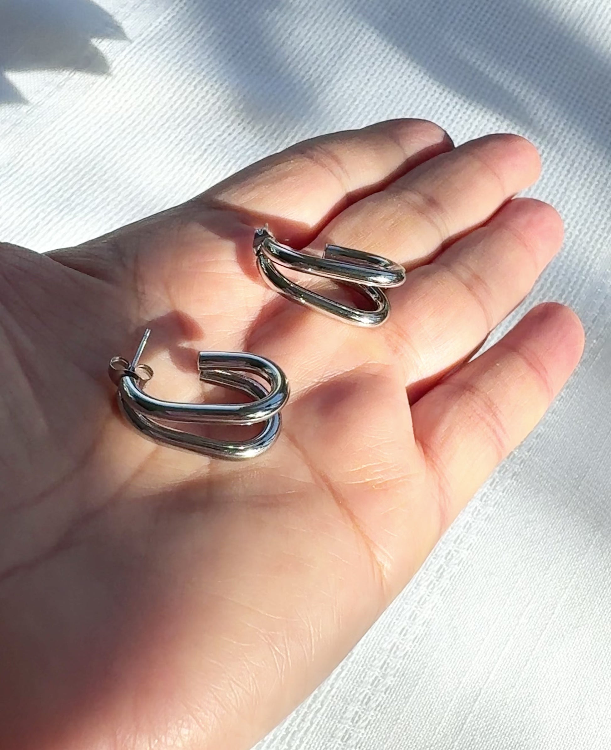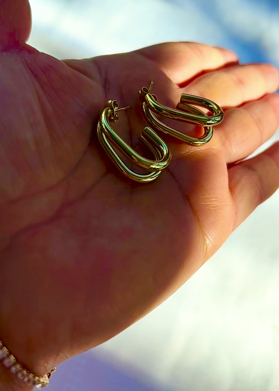 Double Layer Rectangular Hoop Earrings – Gold & Silver