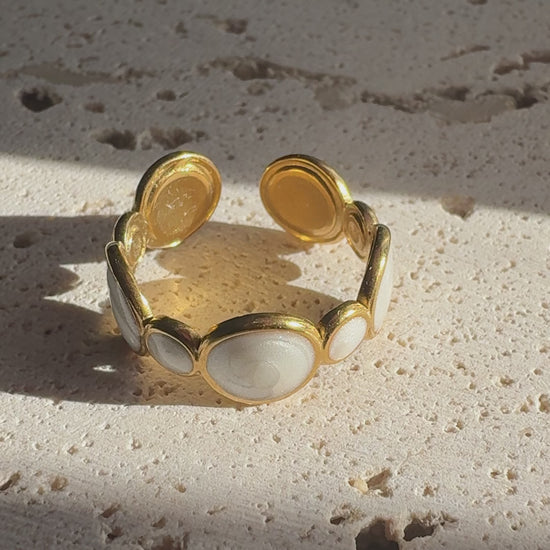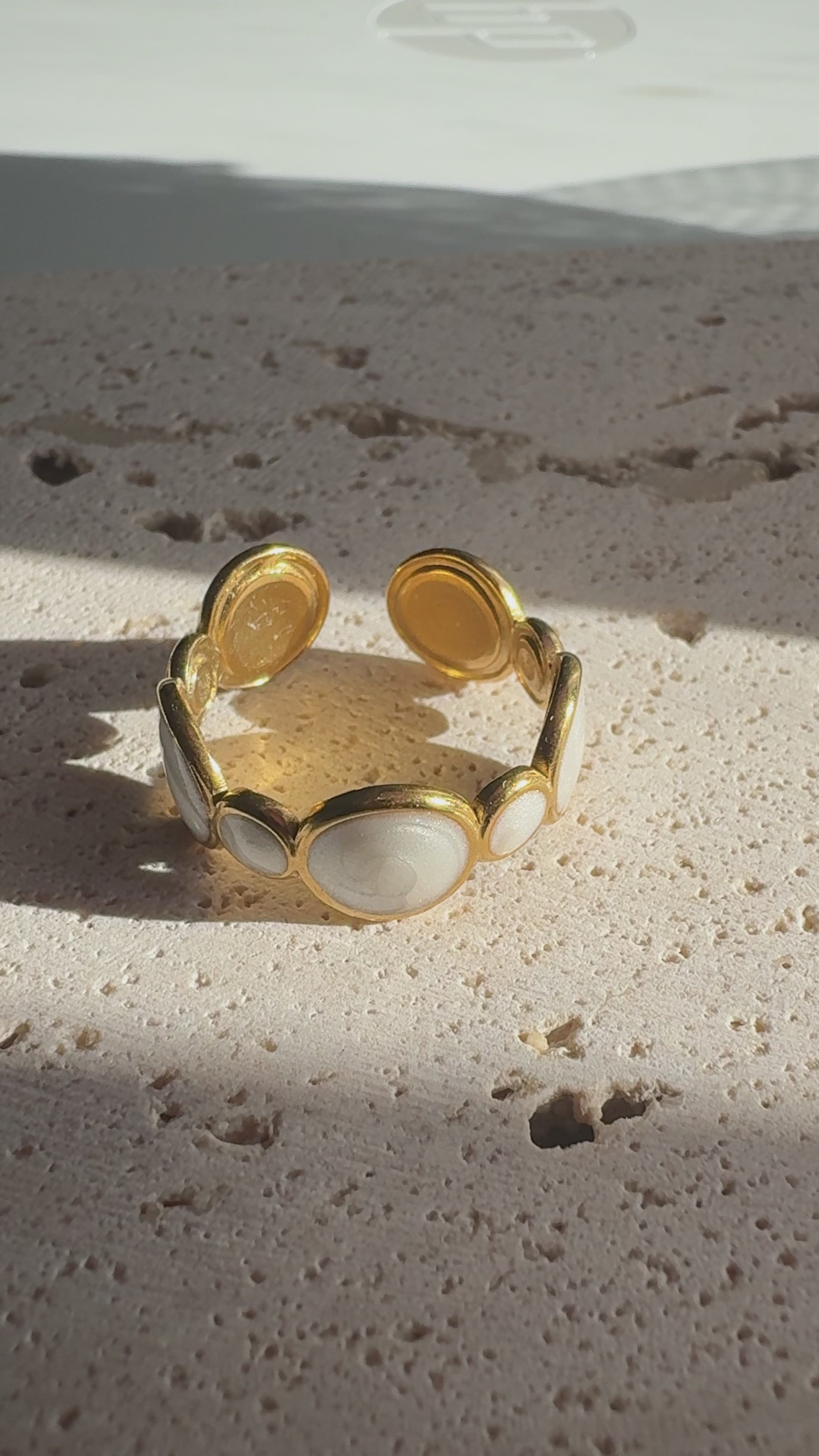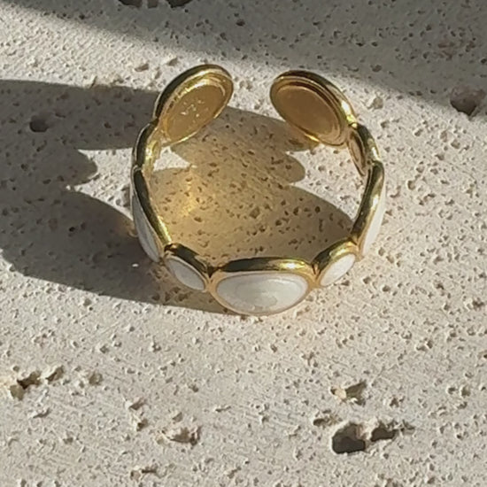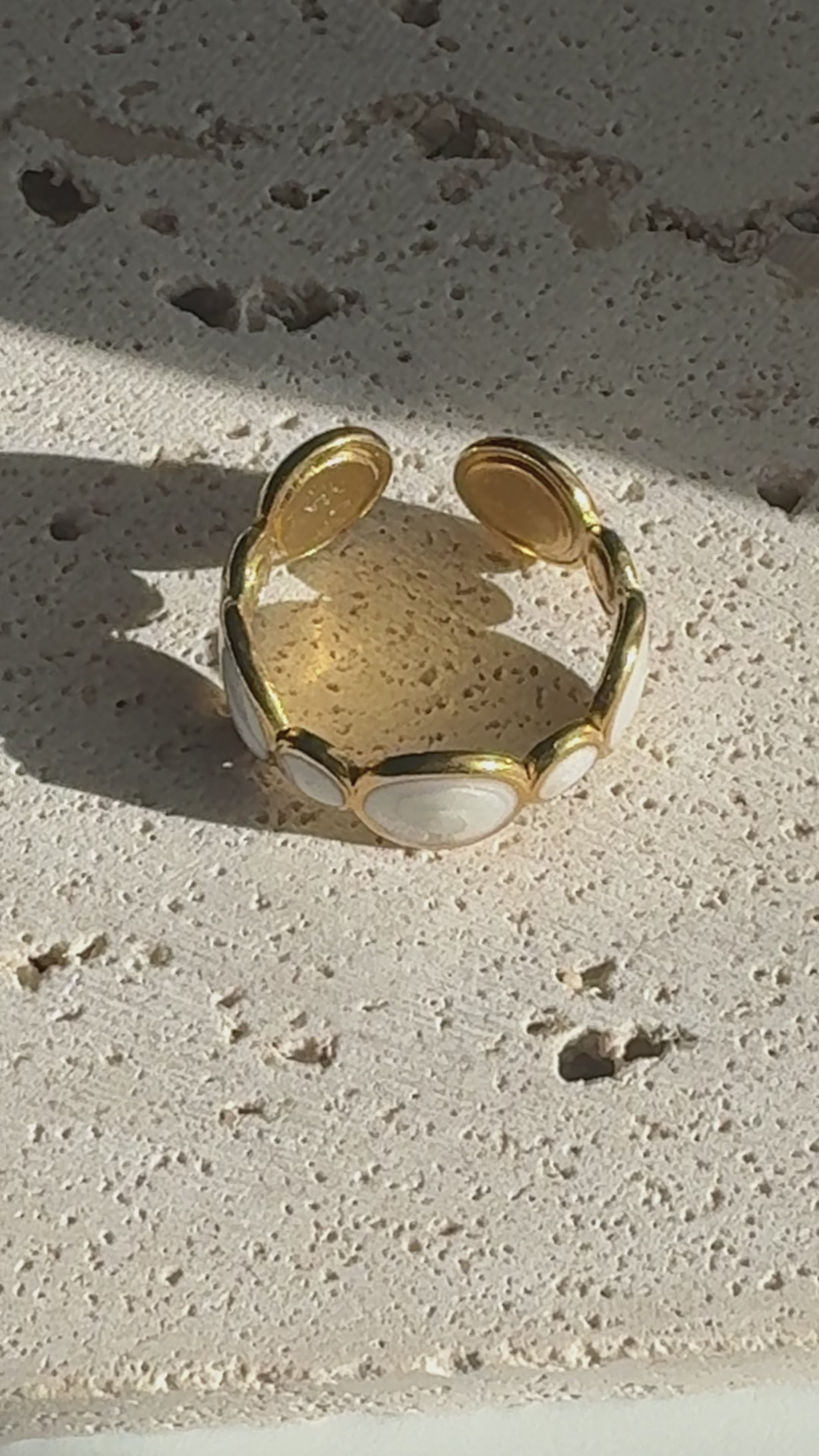 Gold Triple Shell Inlay Ring –Adjusted, 18K Gold Plated Stainless Steel