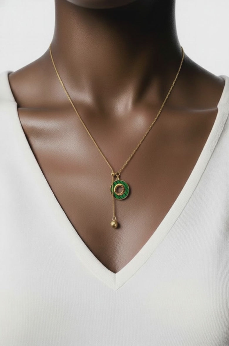 Green Round Pendant Drop Necklace – Gold Stainless Steel Jewelry
