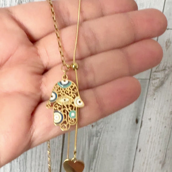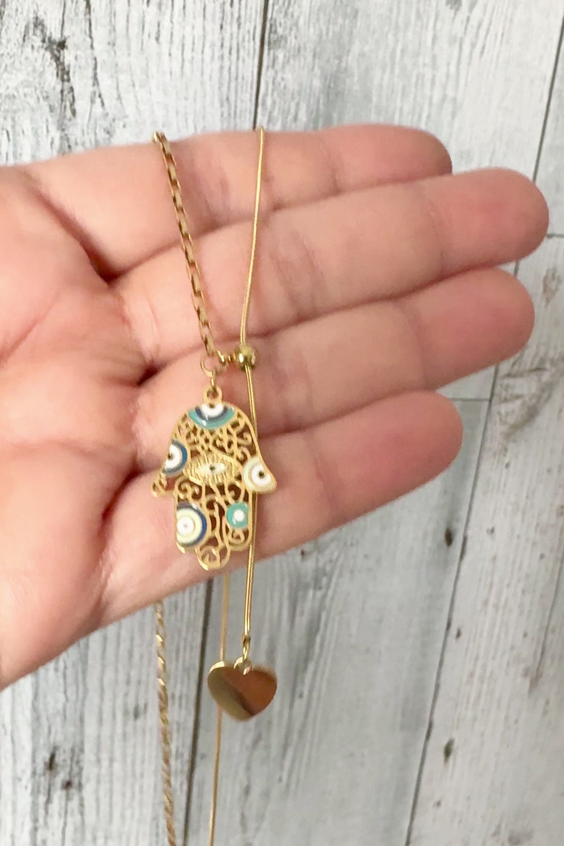 Hamsa Hand Pendant Necklace|18K Gold Plated Stainless Steel