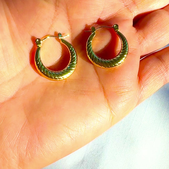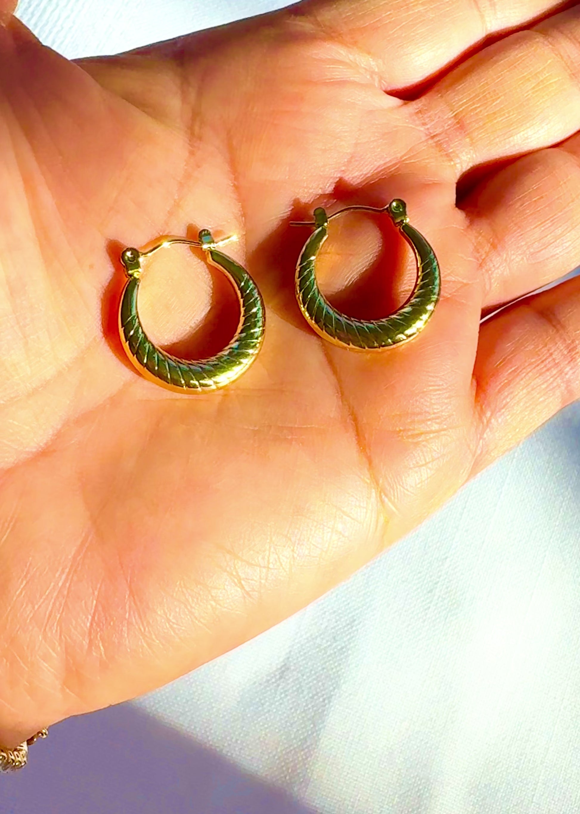 Twisted Engraved Gold Hoop Earrings – 18k Plated Small Hoops