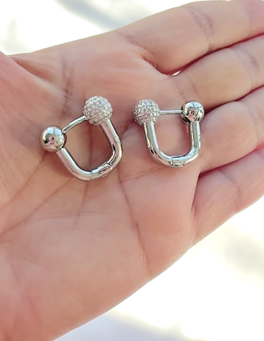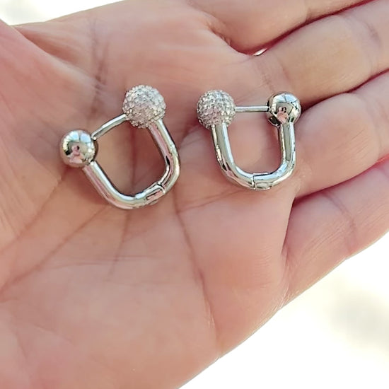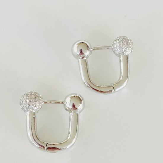 - Unique U‑shaped hoops with contrasting polished and textured ball ends
